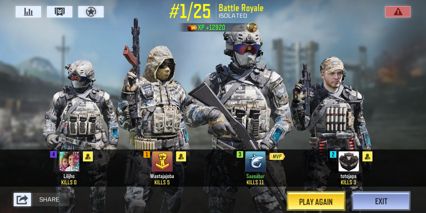 admin Admin Administratif Membre Premium Jun 27, 2019 13,107 11,033 167 Earth 25 Nov 12, 2019 #2 Hey there, thanks for your suggestion! This challenge is now official and can be found here: https://www.glitch.win/index.php?threads/cod-mobile-challenge-last-squad-standing.1560/ 2 Glitch Credits have been added to your account.
